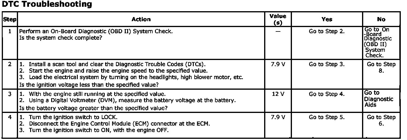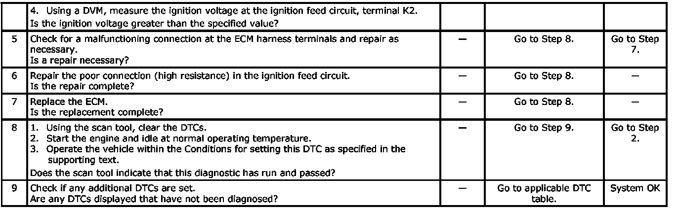 The Engine Control Module (ECM) monitors the ignition voltage on the ignition feed circuit to terminal K2 at the ECM. A system voltage Diagnostic Trouble Code (DTC)will set whenever the voltage is below a calibrated value.