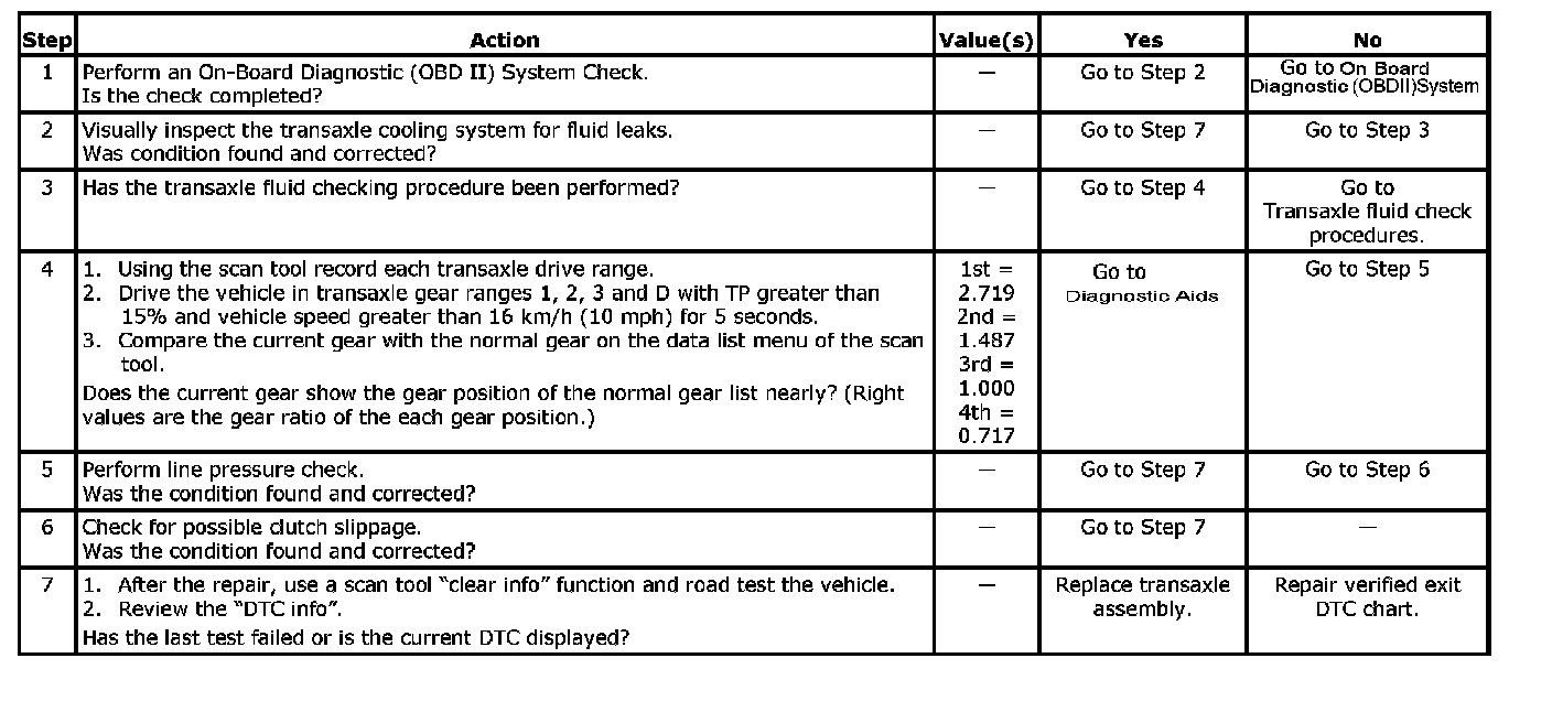 The TCM uses transaxle input speed information and output speed sensor to control line pressure, TCC apply and release and transaxle shift patterns. This information is also uses to calculate the appropriate operating gear ratios and TCC slippage. Conditions for Setting the DTC.