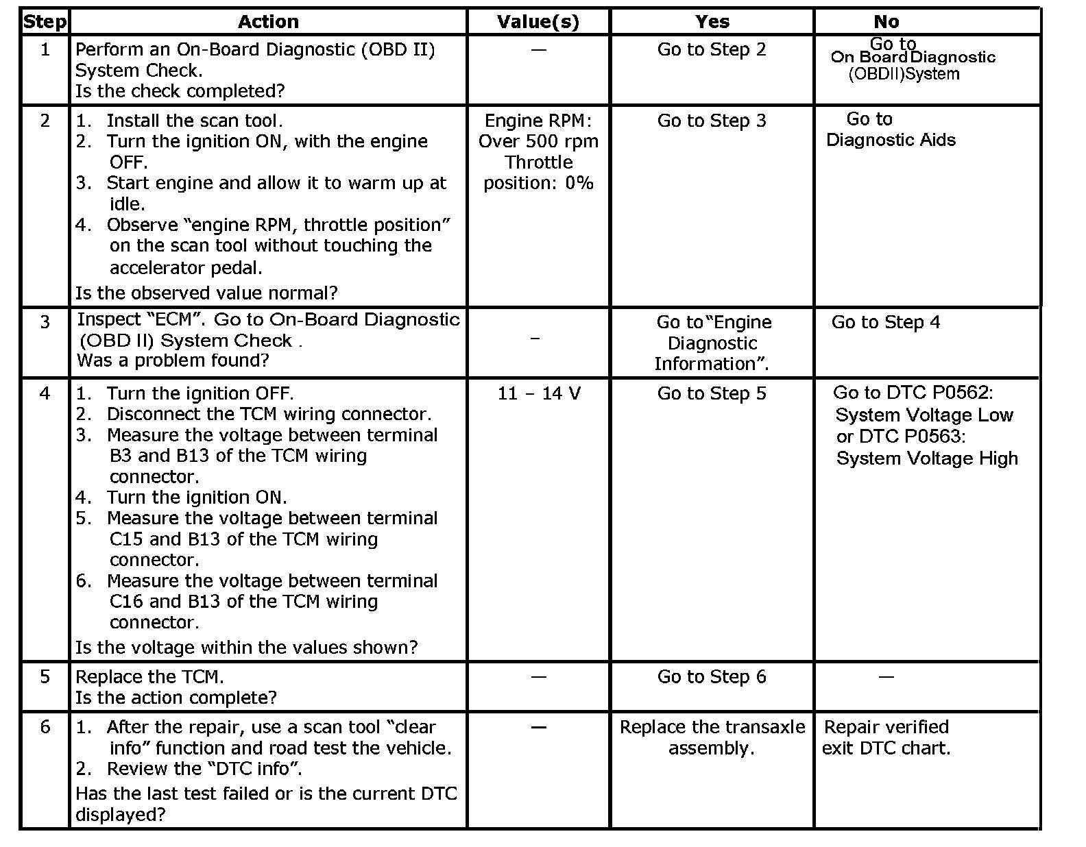 ^ No input speed error DTCs P0715, P0716 or P0717.