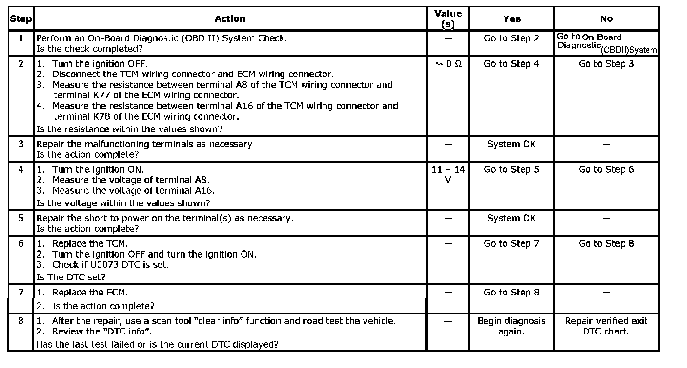 Information is transmitted between the TCM and ECM through the CAN. Information is as follows: