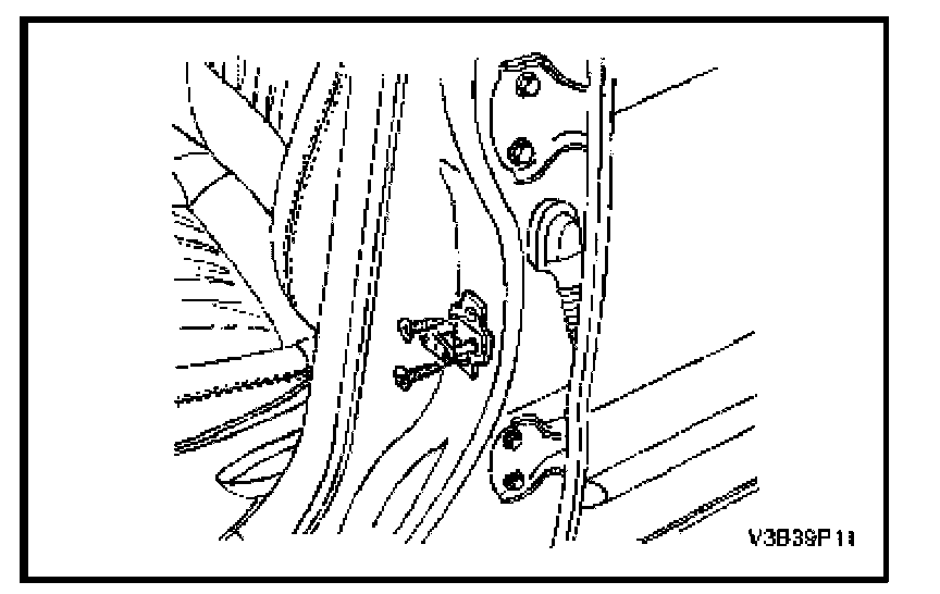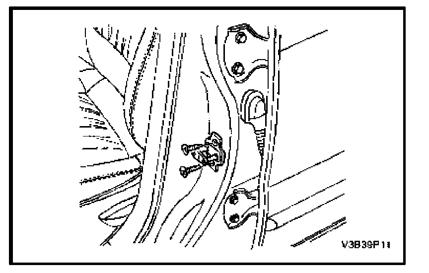 1. Remove the screws and the door lock striker. (Front door shown, rear door similar.)
