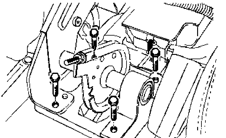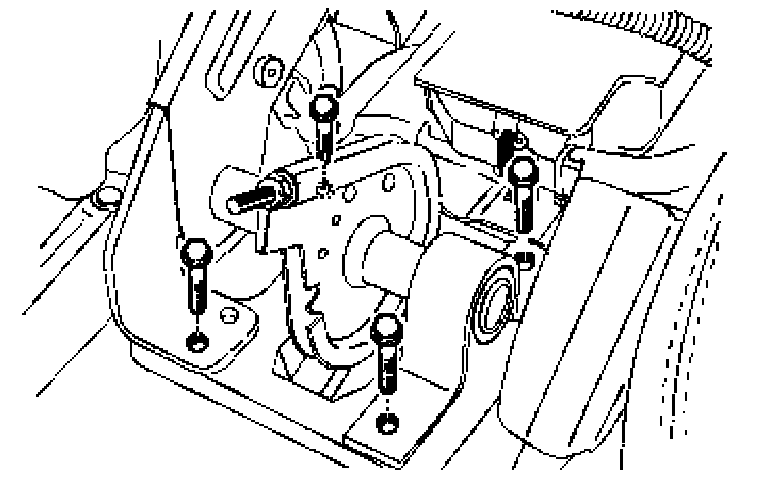 7. Remove the bolts which secure the parking brake lever assembly to the underbody.