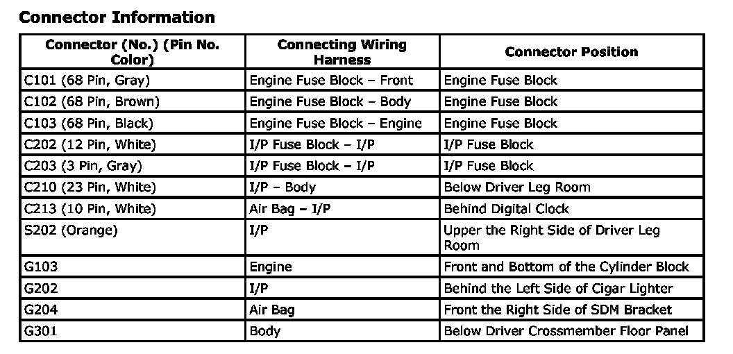 CONNECTOR IDENTIFICATION SYMBOL AND PIN NUMBER POSITION