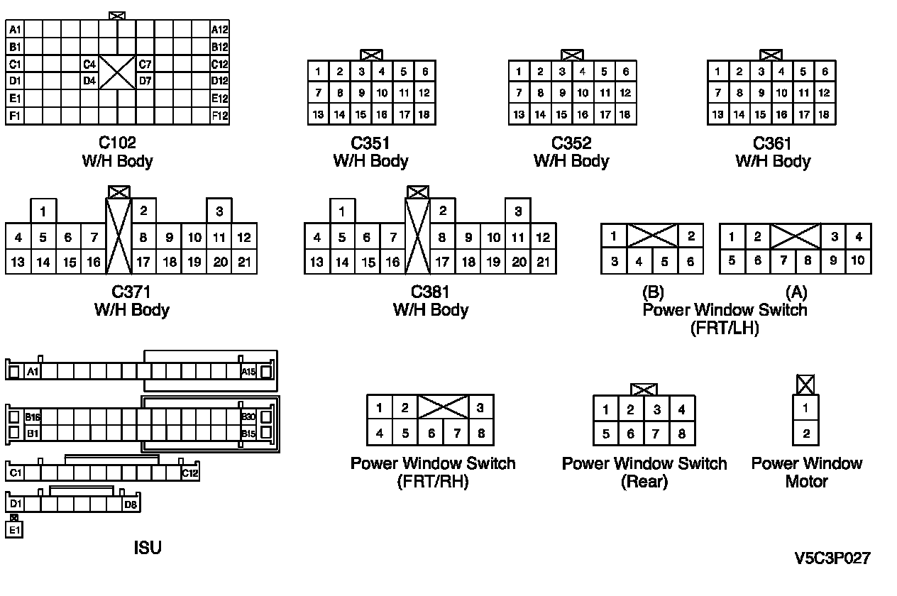 CONNECTOR IDENTIFICATION SYMBOL AND PIN NUMBER POSITION