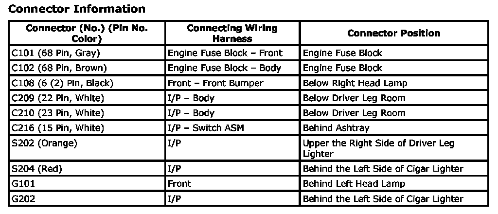 CONNECTOR IDENTIFICATION SYMBOL AND PIN NUMBER POSITION