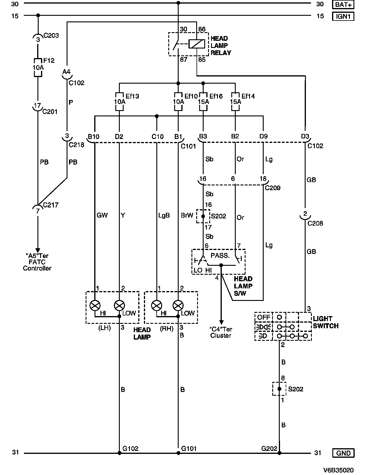 Head Lamp Circuit Wiring Diagram - Head Lamp without DRL:
