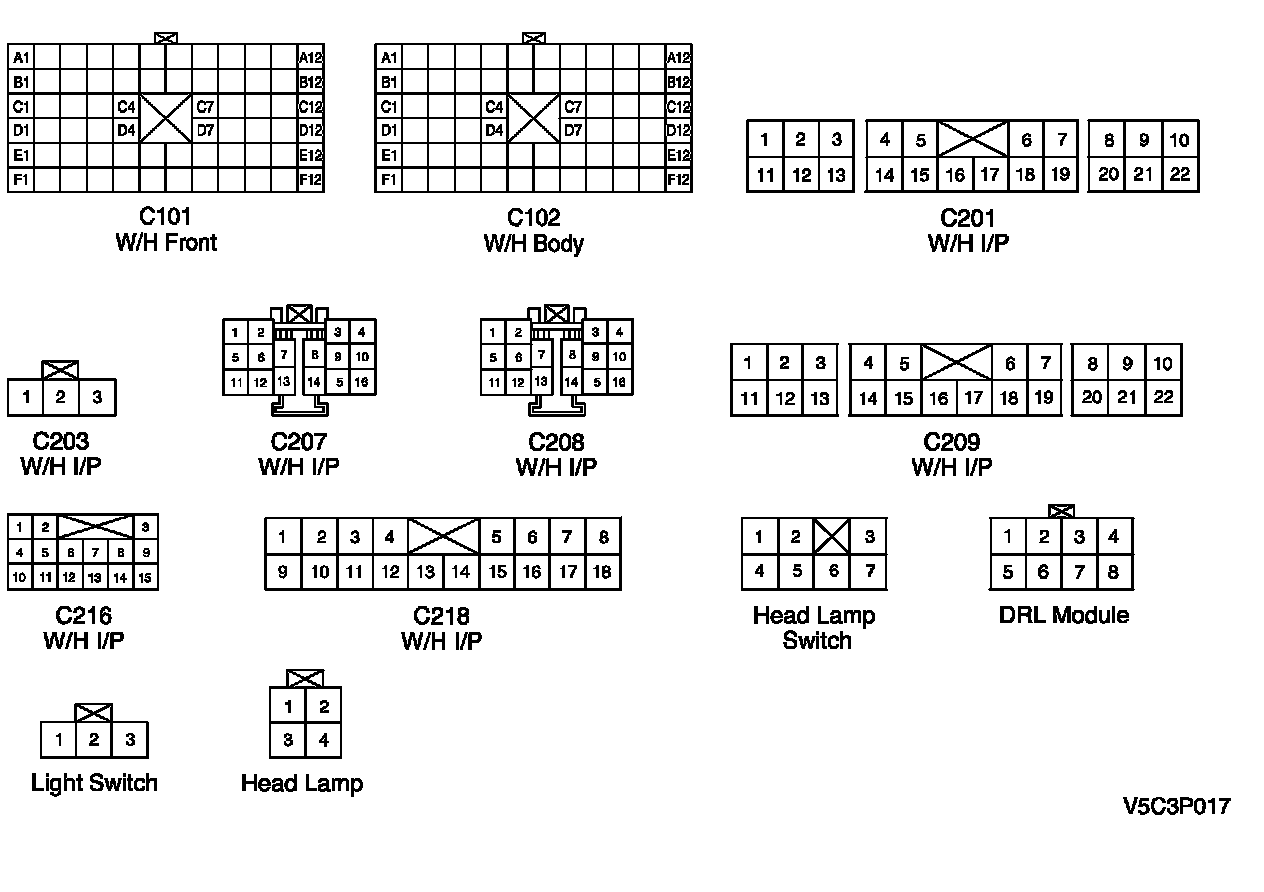 CONNECTOR IDENTIFICATION SYMBOL AND PIN NUMBER POSITION