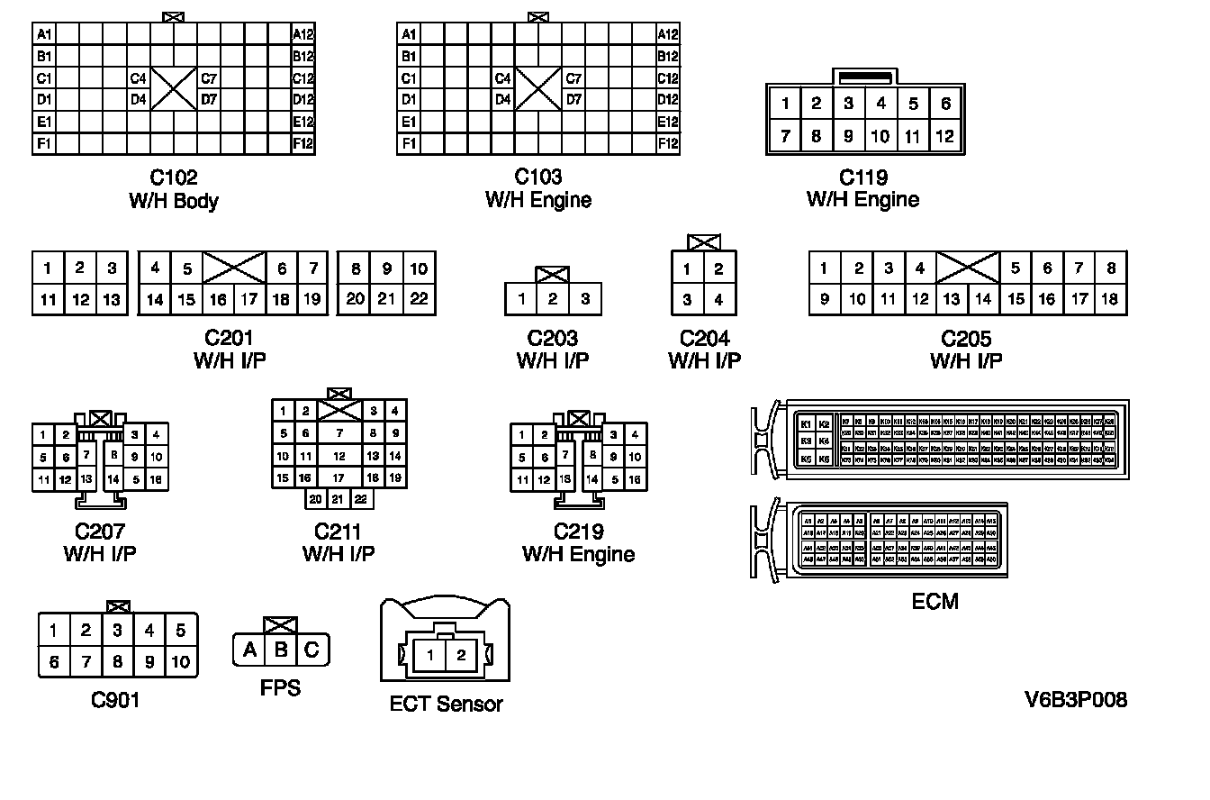 Cluster, ECT Sensor, FPS and Fuel Pump Circuit: