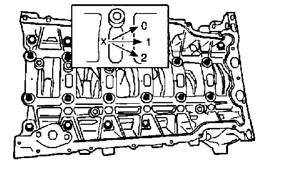 NOTE: The sizes of each upper crankshaft bearing are marked on the bed plate as shown in the illustration.