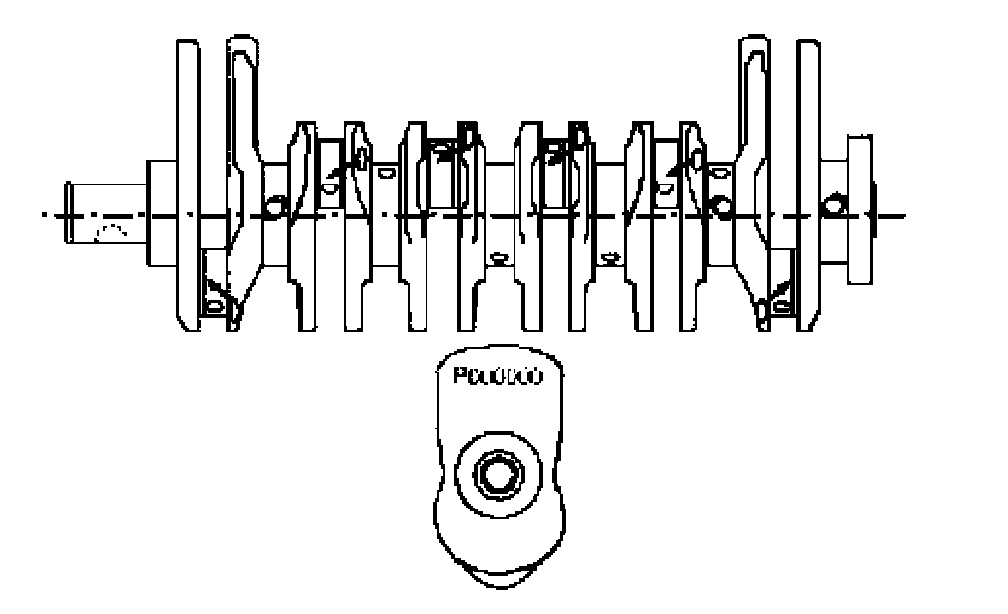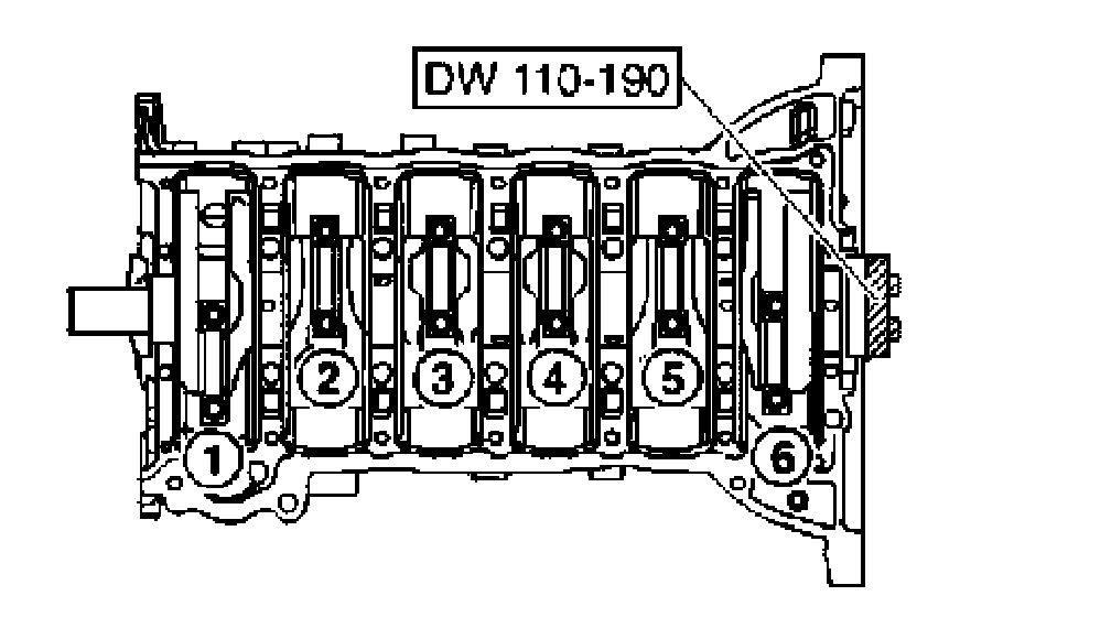 9. Tighten the connecting rod cap bolts using crankshaft adjuster DW110-190. Observe the tightening order of the connecting rod cap bolts as follows: 2 - 5 - 1 - 6 - 3 - 4 (piston number).