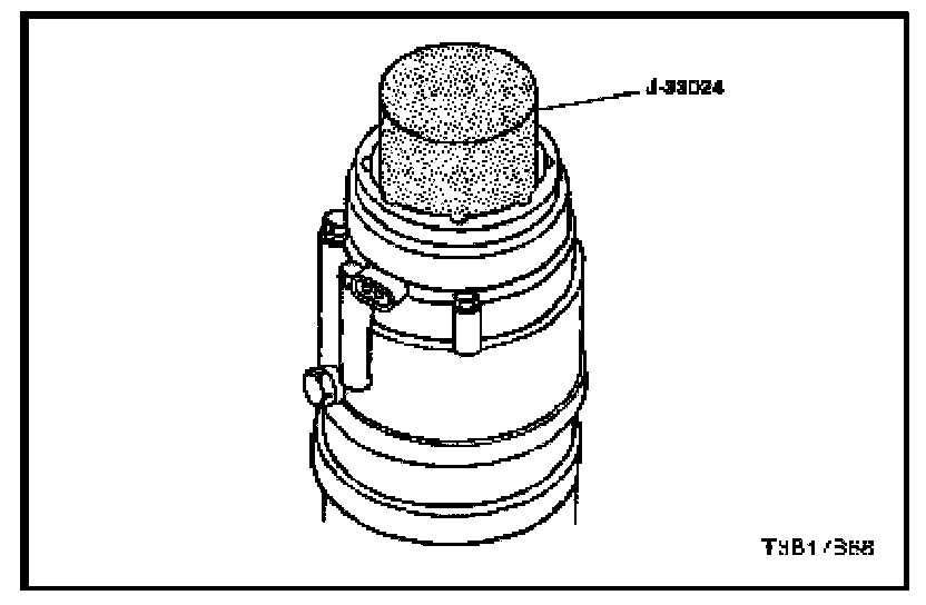 1. Place the clutch coil installer adapter J-33024 over the internal opening of the clutch coil housing and align the clutch coil installer adapter J-33024 with the compressor housing.