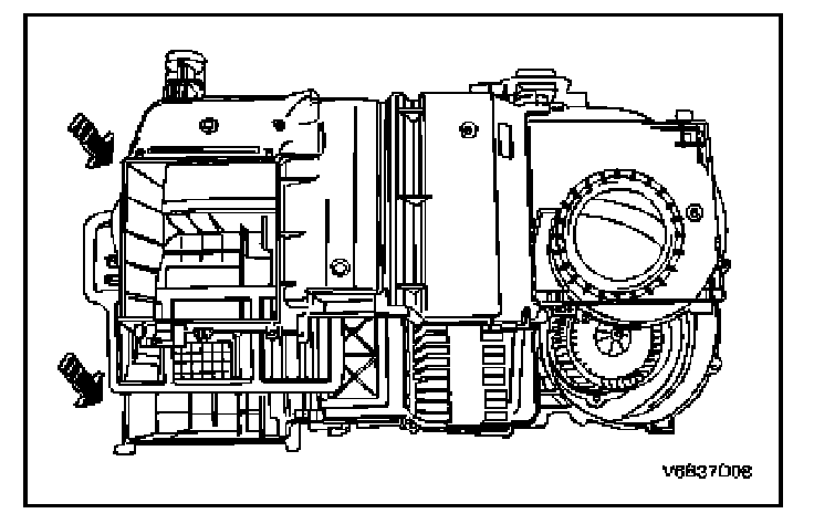 1. Remove the heater/air distributor case assembly. Refer to A/C Module Removal.