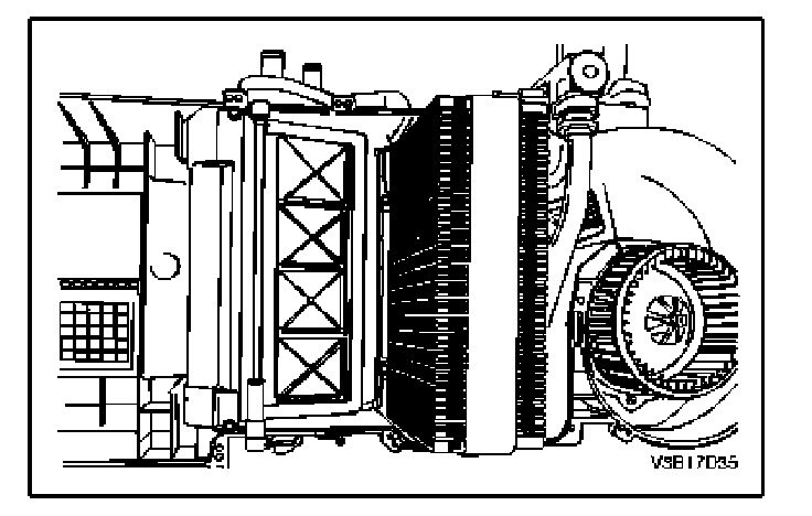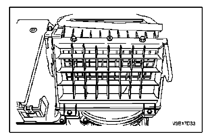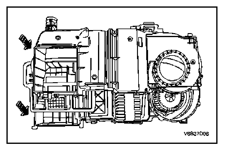 6. Install the tighten the screws that secure the evaporator core case cover to the A/C module.