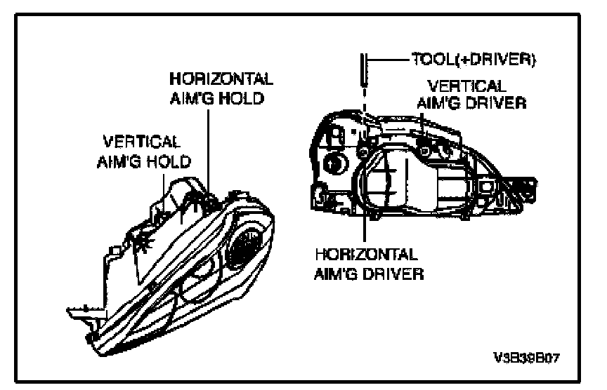 Headlamp AimingNOTE: Check and adjust, if necessary, headlamp aiming whenever a headlamp assembly is replaced or the vehicle has been in a collision. If the headlamp cannot be properly adjusted, replace the headlamp.