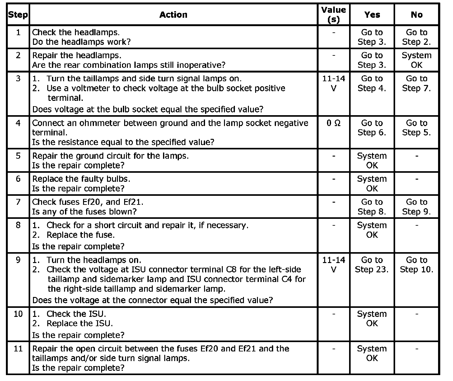 Taillamps and/or Side Turn Signal Lamps Do Not Work