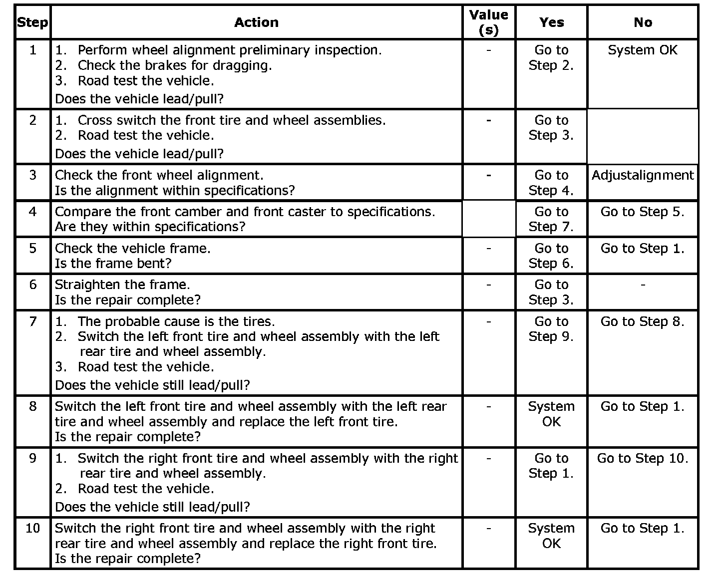 Radial Tire Lead / Pull Diagnosis Chart