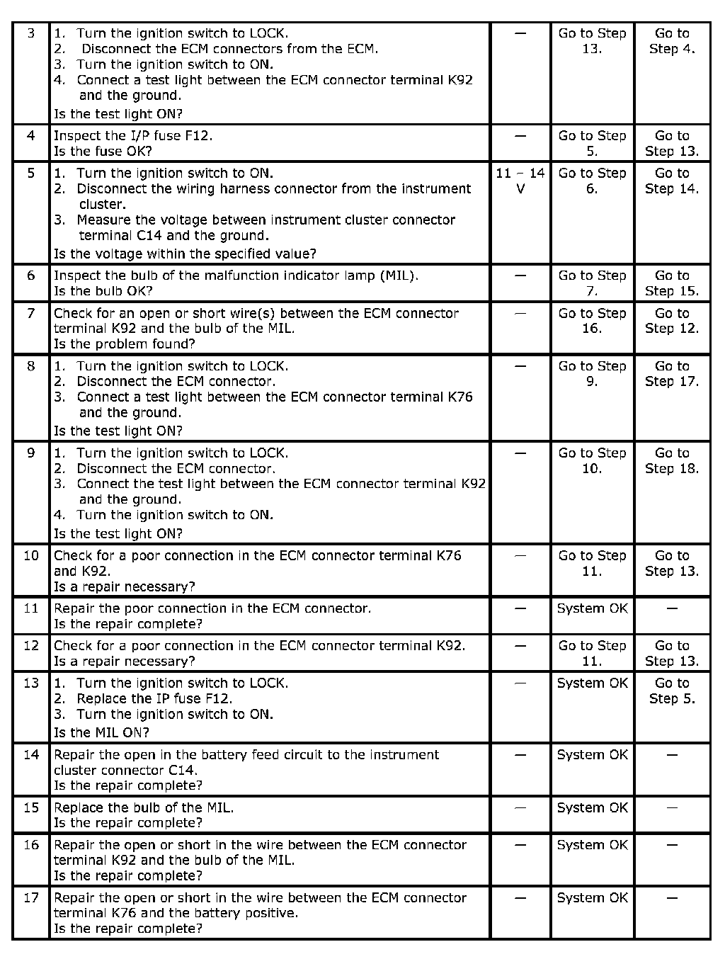 Check the battery and ignition feed circuits for poor connections if the MIL is intermittent. Any circuitry, that is suspected as causing an intermittent complaint, should be thoroughly checked for backed-out terminals, improper mating, broken locks, improperly formed or damaged terminals, poor terminal-to-wiring connections or physical damage to the wiring harness.