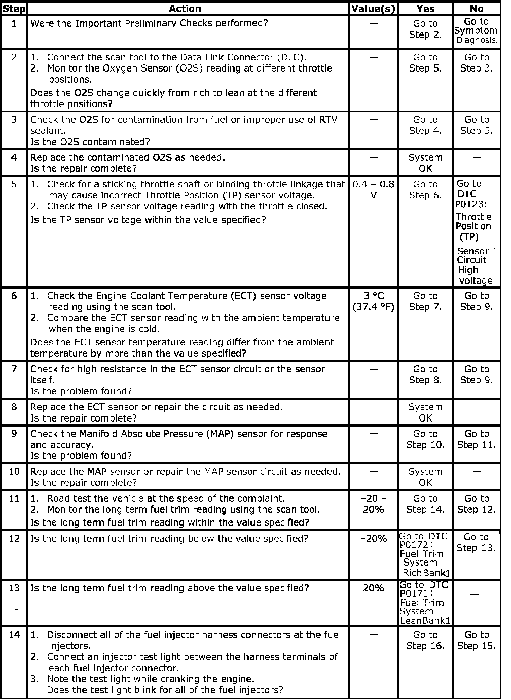 Rough, Unstable or Incorrect Idle, StallingStep 1 - 14: