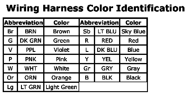 Wiring Harness Color Identification: