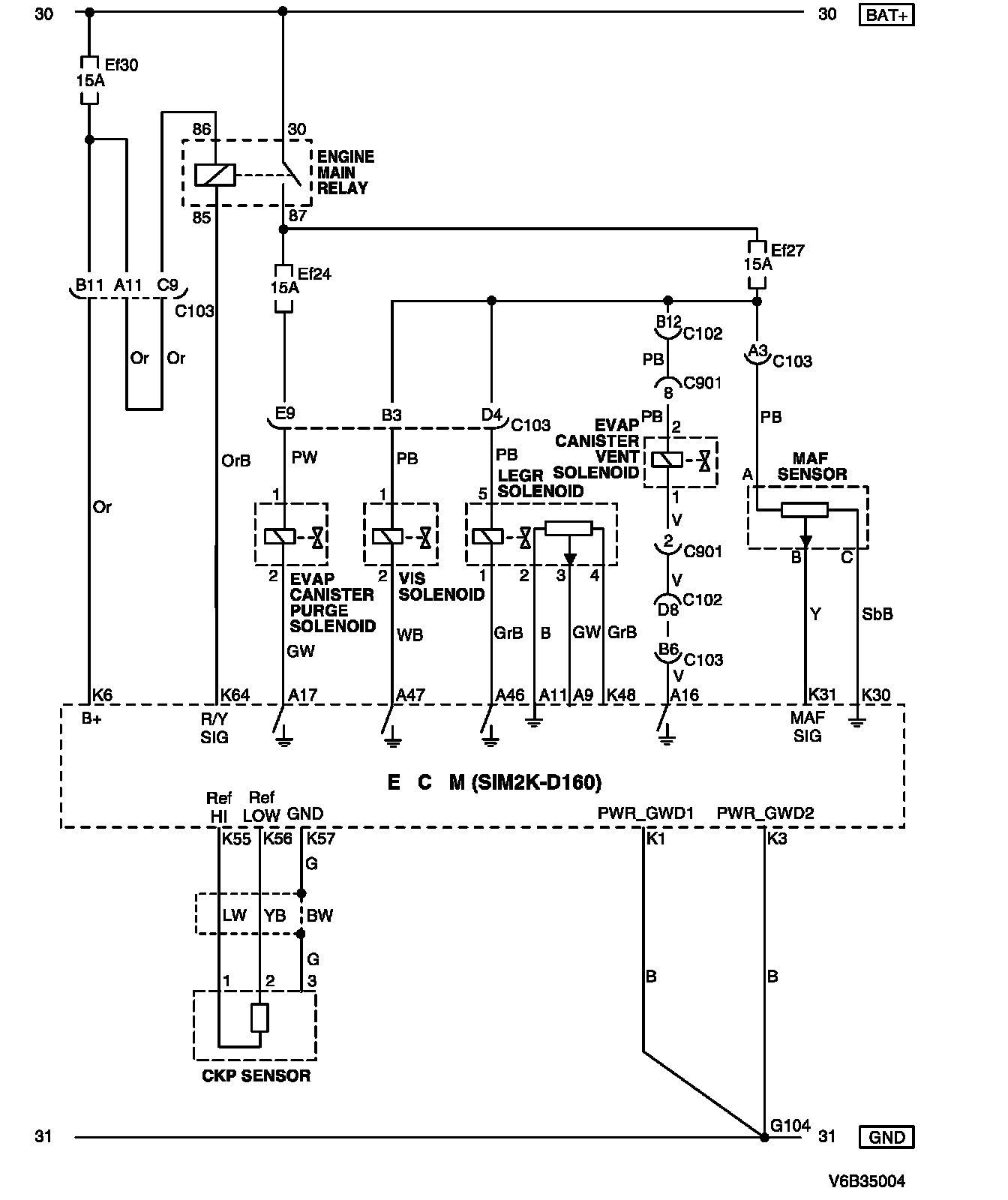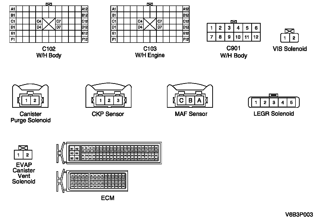 Solenoid (Canister Purge, VIS, EEGR), MAF Sensor Circuit
