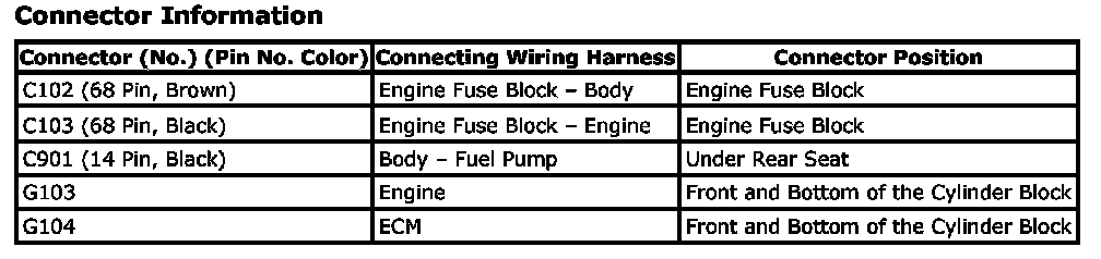 CONNECTOR IDENTIFICATION SYMBOL AND PIN NUMBER POSITION