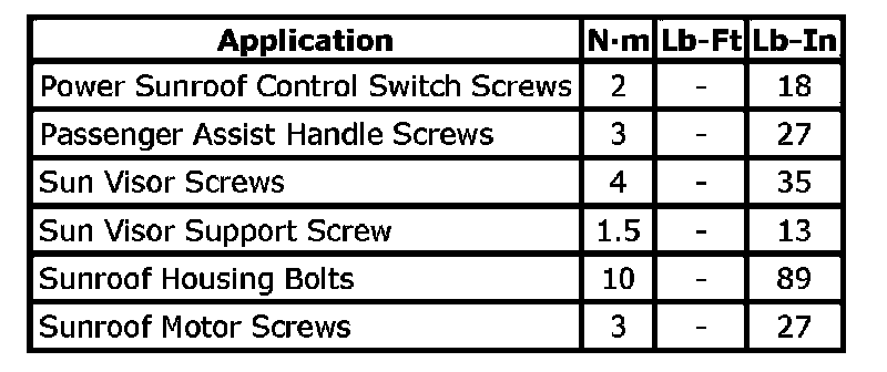 Tightening Torque Specifications: