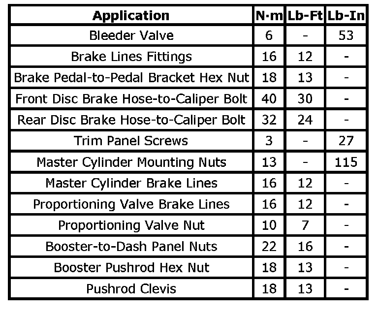 Tightening Torque Specifications