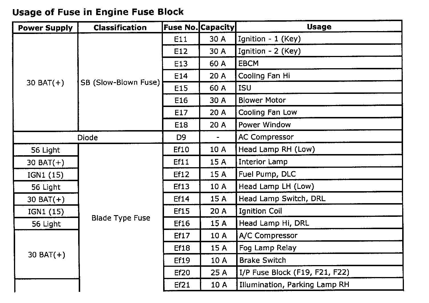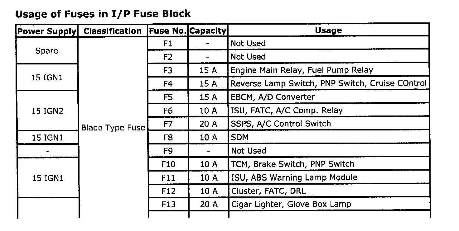 Fuse and Fusible Link Locations