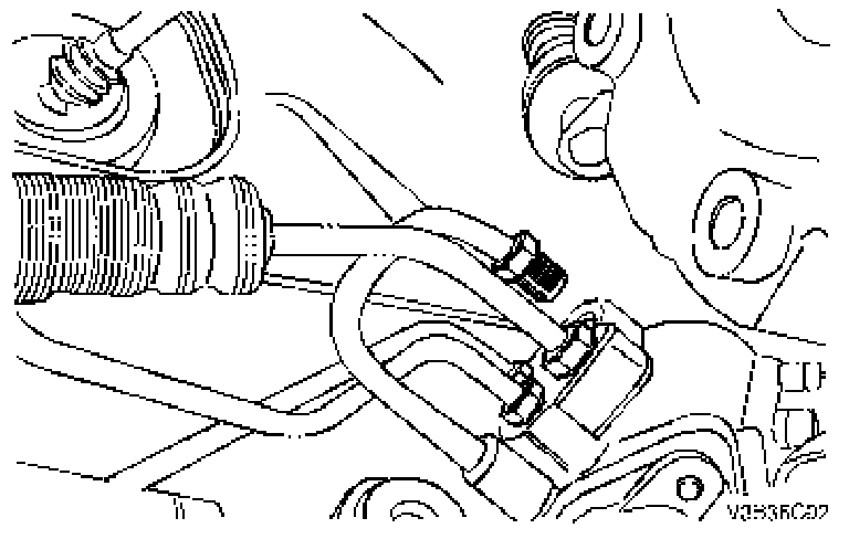 4. Disconnect the power steering gear fluid inlet pipe.