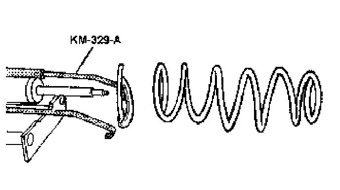 2. Fasten the strut assembly to the spring compressor KM-329-A. Make sure the hooks are seated on the strut spring properly.
