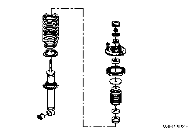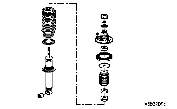1. Install the rear spring lower insulator, coil spring, hollow bumper, dust cover, spring upper insulator and rear strut mount onto the rear strut assembly.