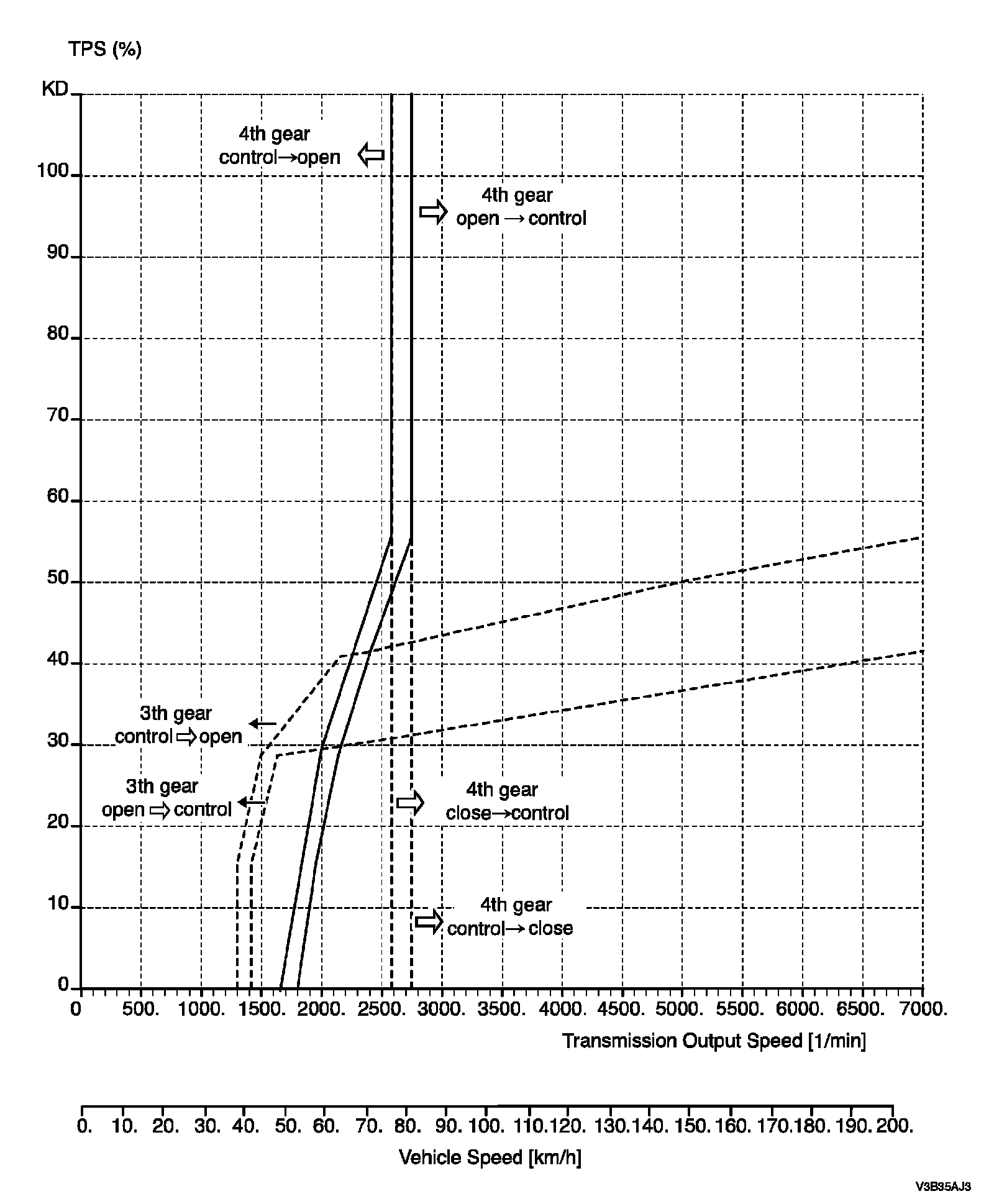 Lock-Up Clutch Applied (Economic Mode; Third Gear, Fourth Gear) (2.5 DOHC):