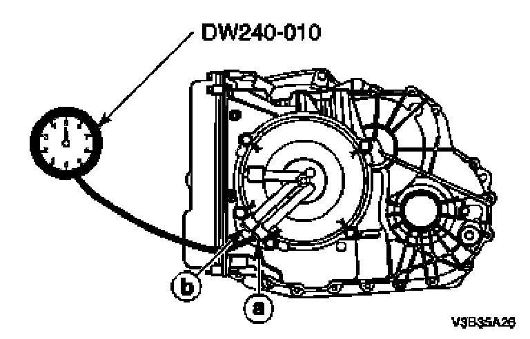 - Oil pressure gauge at line pressure port (clutch B or E ports on transaxle case)