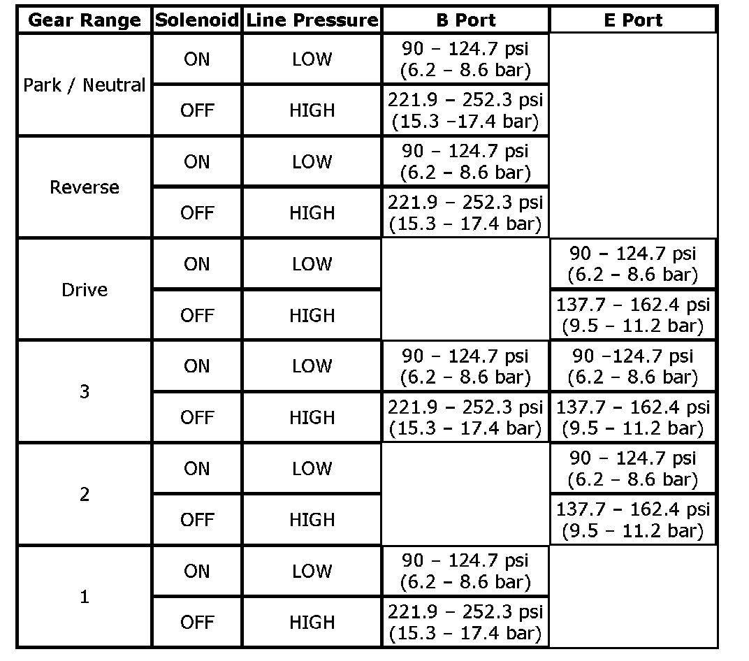 Line pressures are calculated for 2 sets of gear ranges - Drive-Park-Neutral and Reverse. This allow the transaxle line pressure to be appropriate for different pressure needs in different gear ranges: