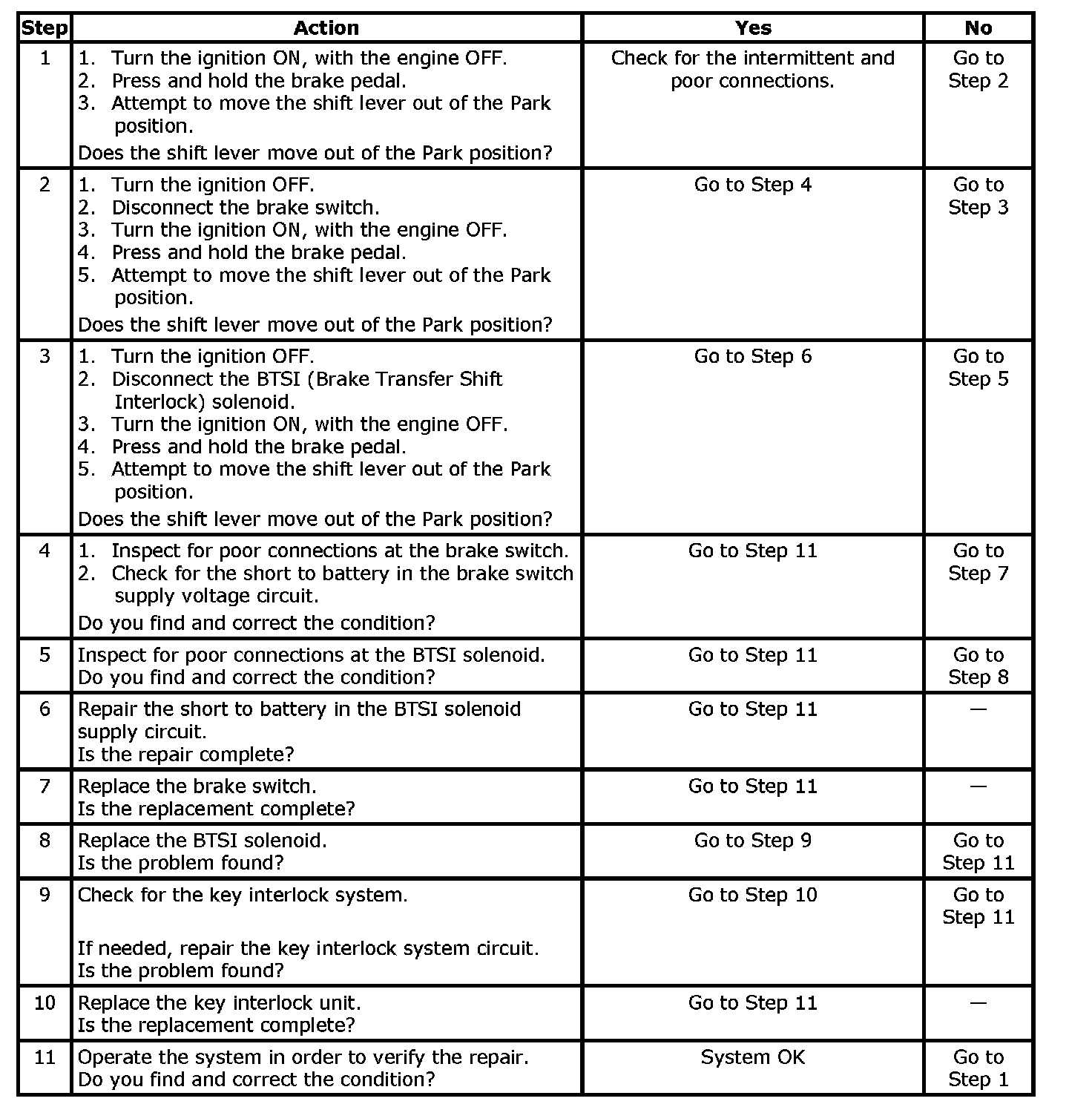 Shift Lever Does Not Move with Brake Pedal Depressed