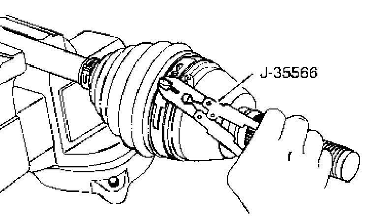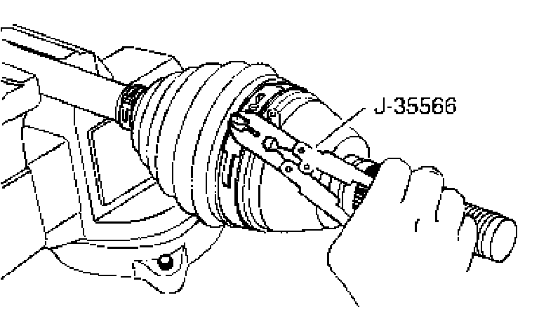 2. Spread the snap ring using the snap ring pliers J-8059 and install the outer joint onto the axle shaft.