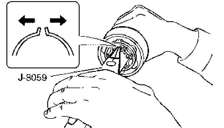 5. Spread the snap ring using the snap ring pliers J-8059 and remove the outer joint from the axle shaft.