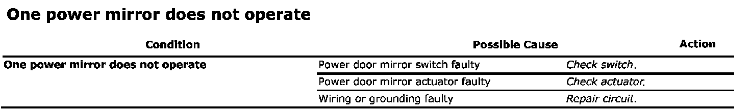 One Power Mirror Does Not Operate