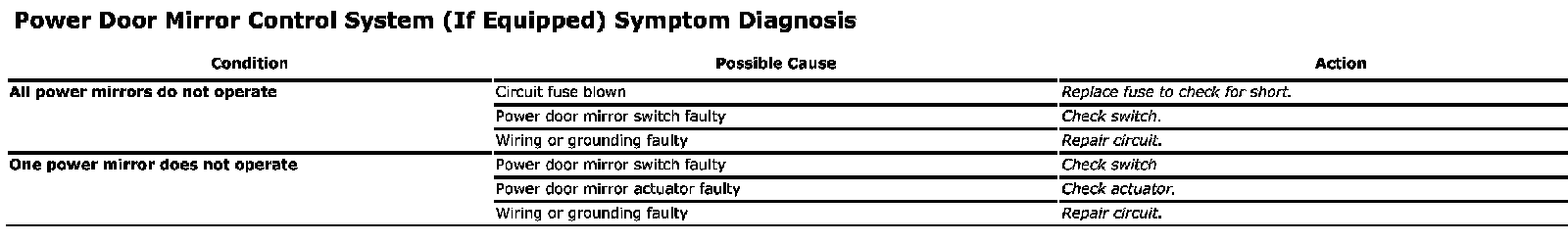 Power Door Mirror Control System (If Equipped) Symptom Diagnosis:
