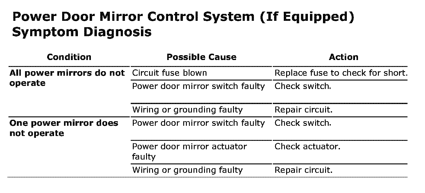 Power Door Mirror Control System Symptom Diagnosis