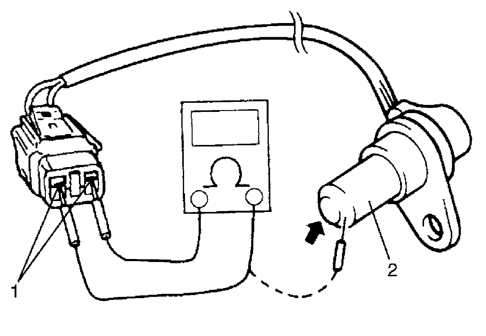 Between both terminals (1) of sensor 1.2 - 1.6 k ohms at 20°C (68°F)