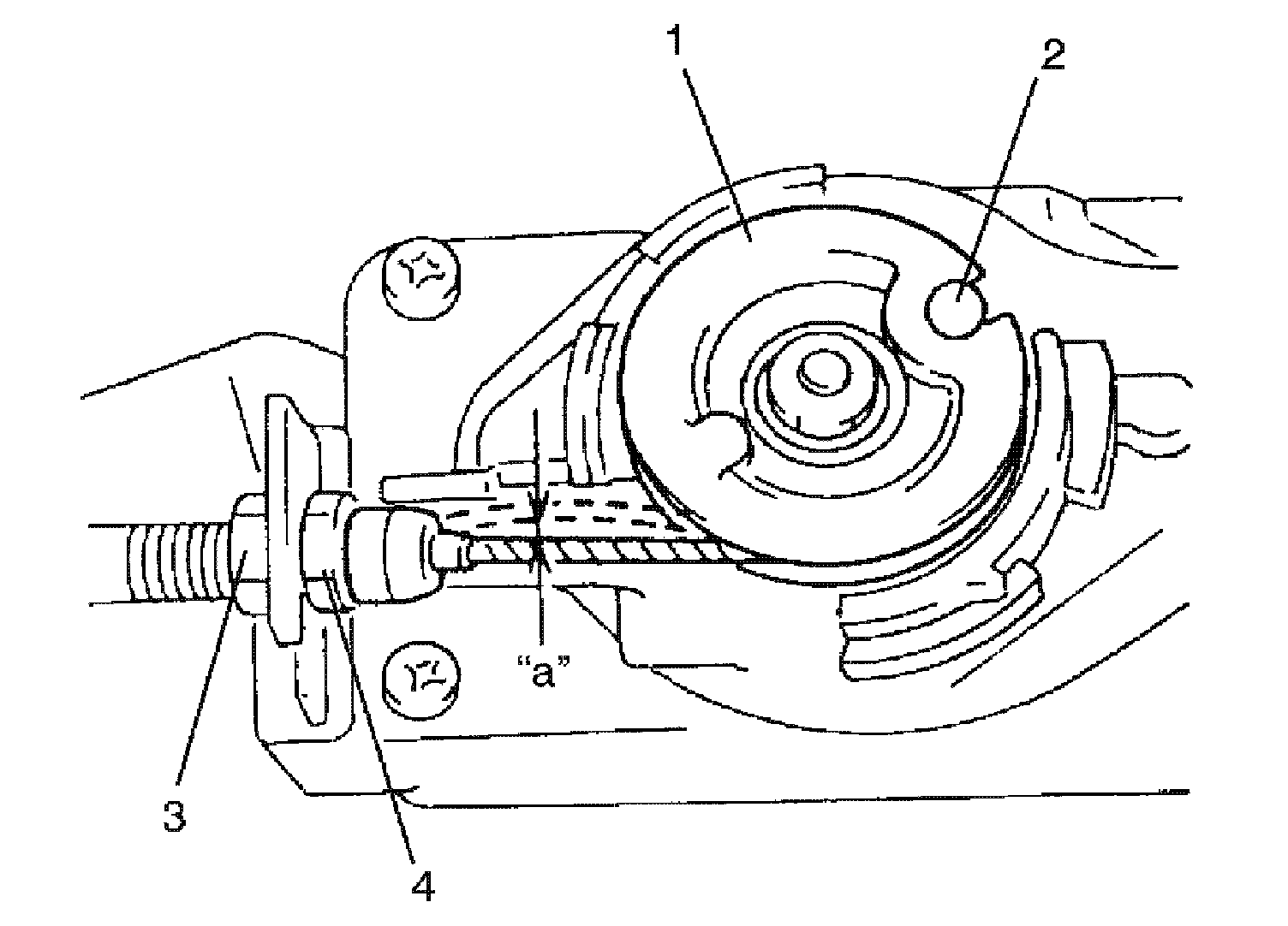 Cruise cable play "a": 1 - 2 mm (0.04 - 0.08 in.)