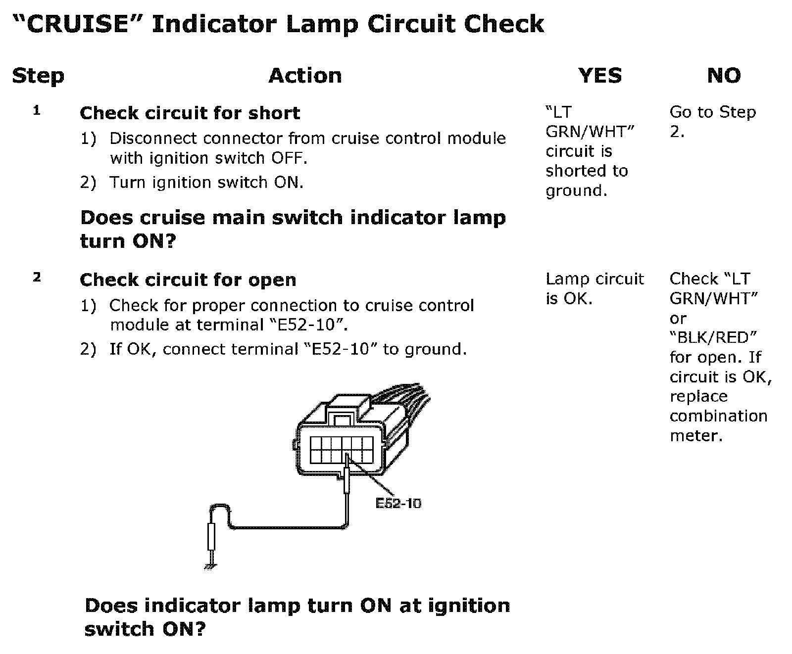 Cruise Indicator Lamp Circuit Check