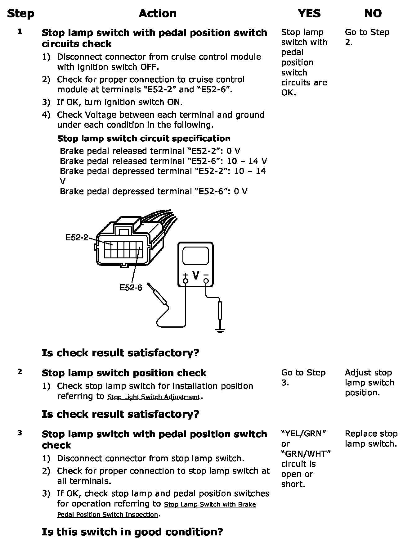 Stop Lamp Switch With Pedal Position Switch Circuits Check