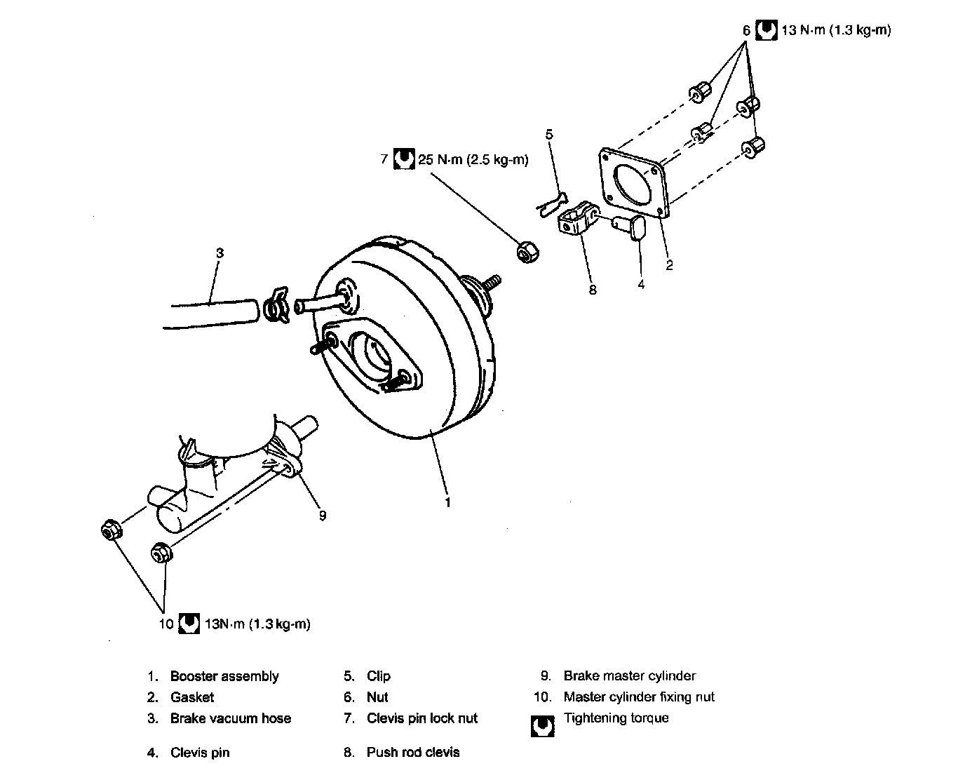 Never disassemble brake booster. Disassembly will spoil its original function. If faulty condition is found, replace it with new one.