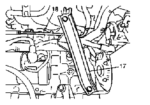 10. Remove rear stiffener (17), and disconnect coolant pipe (18) from intake manifold.