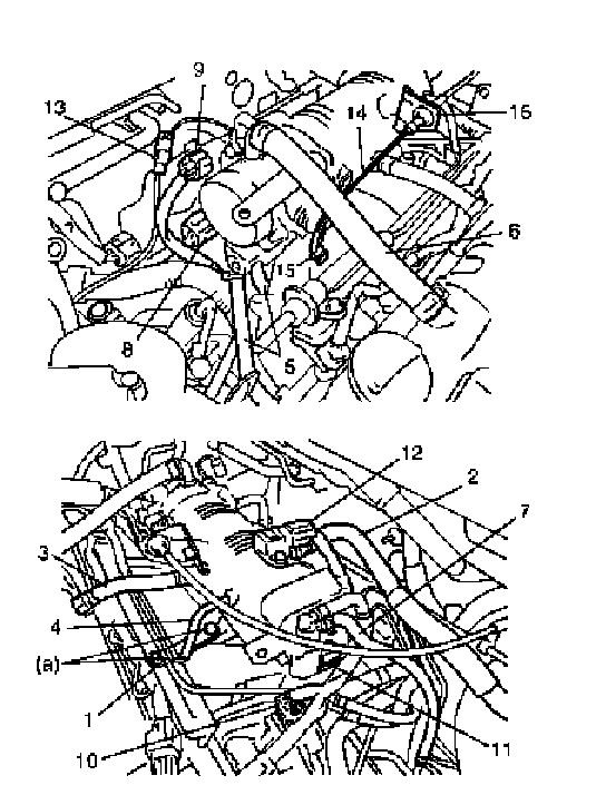 - Vacuum hose (15) from EVAP canister purge valve