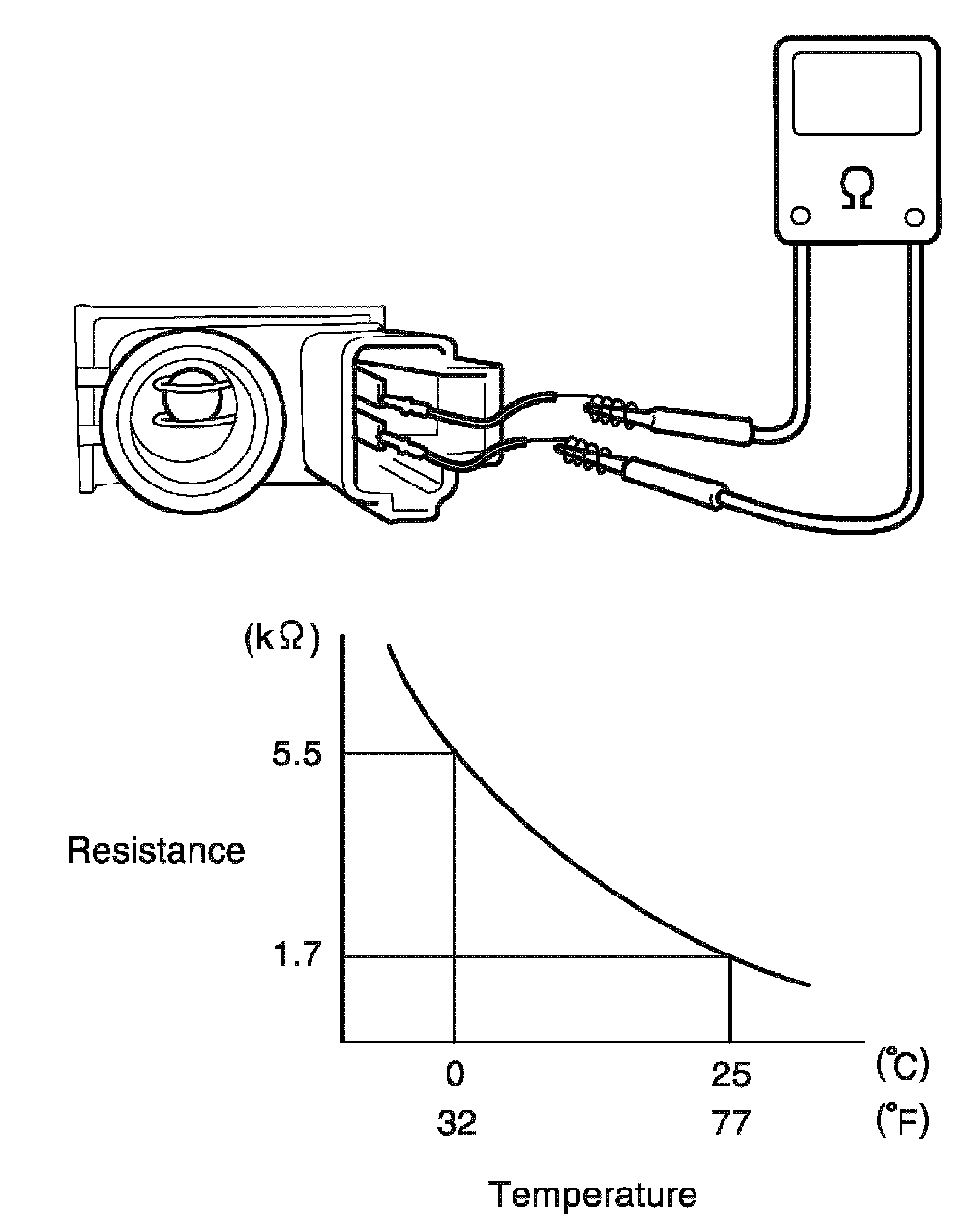 Inside air temperature sensor resistance: 1.7 kilo ohm± 85 ohm at 25 °C (77 °F)