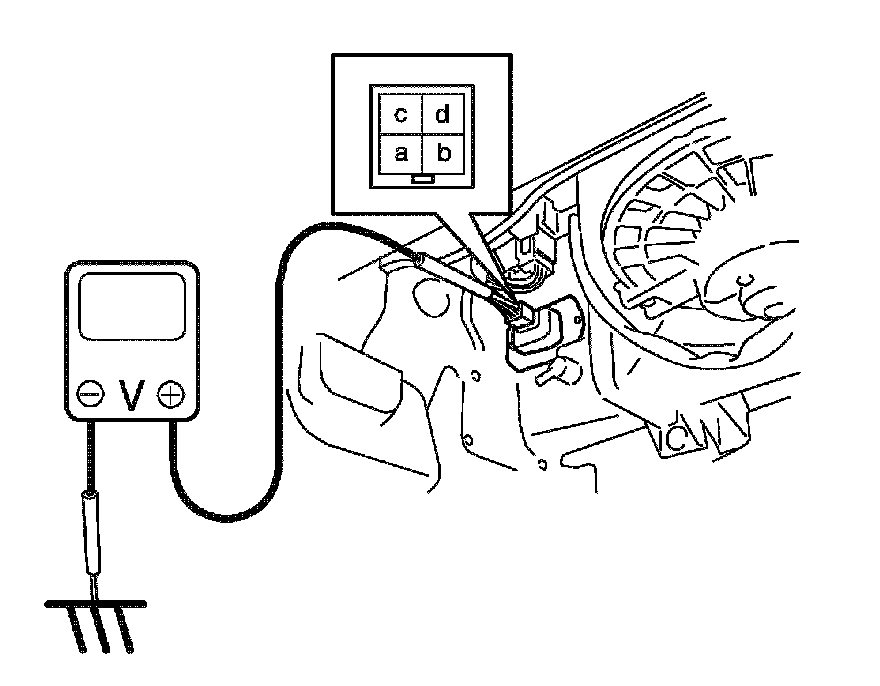4. Measure resistance between "c" and "d" terminals of blower motor controller.
