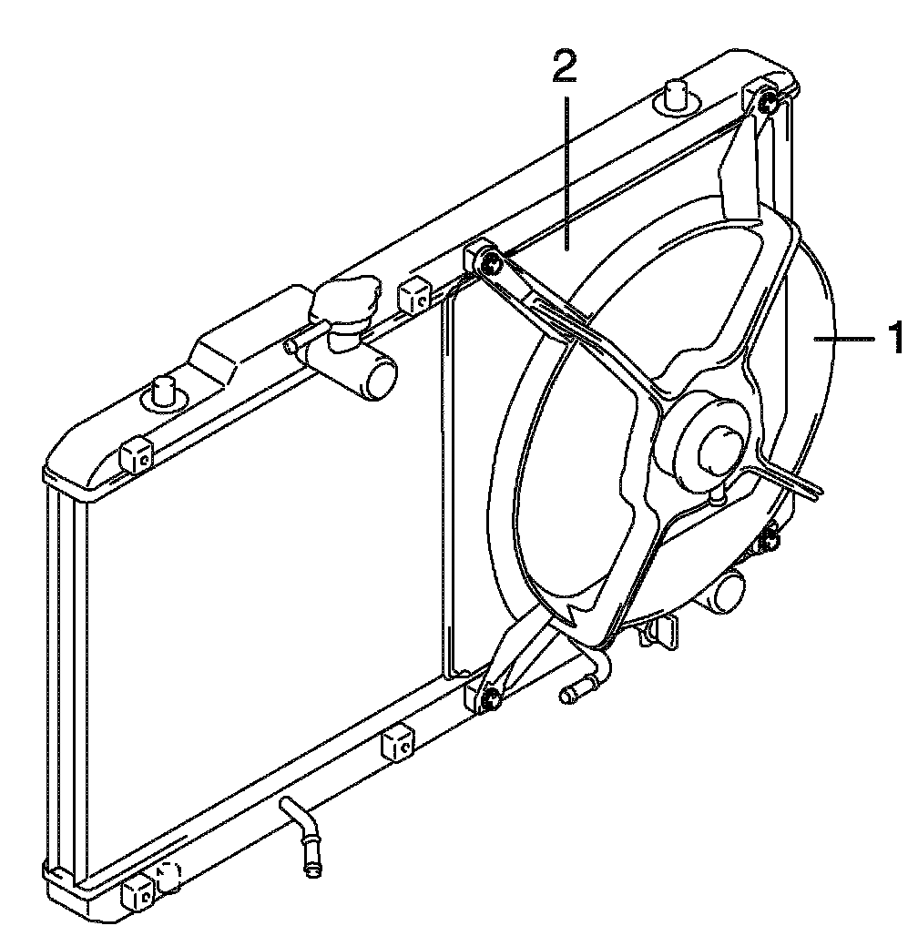 3. Remove condenser cooling fan (1) from radiator (2).